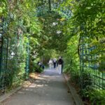 Richard’s cousin Katherine had told us about a walkway Paris had installed atop a no longer used elevated railway, so we decided to check it out on a Sunday afternoon. It’s called Le Coulee Vert, the green gully. That’s a little odd because it’s way up in the air, but that’s the translation we kept getting when we looked it up! Our GPS said that there was an entrance at a particular place, which seemed to us to be near one end, and we thought this would be our best starting point. We took a cab there and had to hunt around for the actual access and eventually found a stairway going up a couple of flights, so Richard carried my scooter up all those stairs, heroically. (It weighs about thirty pounds, not horrible but no small feat.)