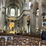 We visited Saint-Sulpice, the second largest church in Paris, besides Notre Dame. It was full of large posters about its inclusion in many works of art: books, operas and so on. I hadn’t known! It really is a glorious edifice, and I would have guessed it to be even larger than Notre Dame if I hadn’t looked up the stats. There was a funeral about to begin so I felt sorry that they actually let us tourists mill around while the bereaved filed in.